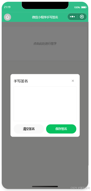 在微信小程序表单场景中,常需实现手写签名功能(如合同签署、审批流程等),需满足"点击唤起签名→手绘签名→保存上传→预览/删除签名"的完整交互流程,同时保证交互流畅、无样式残留等问题。