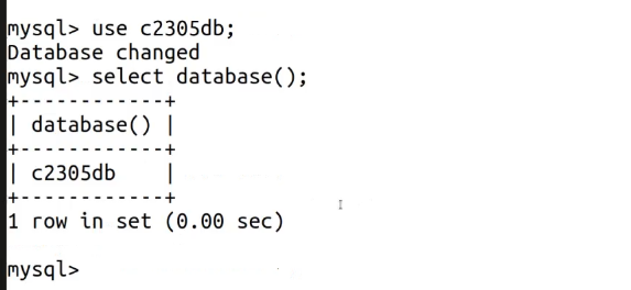 +------------+ | database() | +------------+ | c2305db | +------------+ 1 row in set (0.00 sec)这个结果确认了你当前确实处于