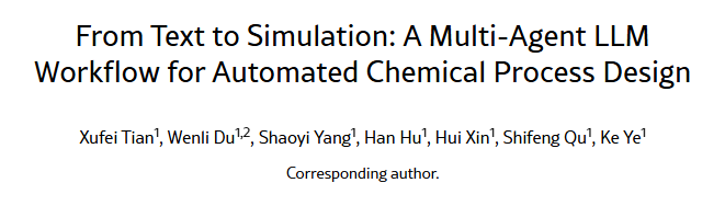 本研究提出一种新颖的多智能体工作流程,通过发挥大语言模型的语义理解能力,实现与化工过程模拟软件的迭代交互,完成了从文本化工艺描述到经计算验证的软件配置的端到端自动化模拟,从而实现设计优化。