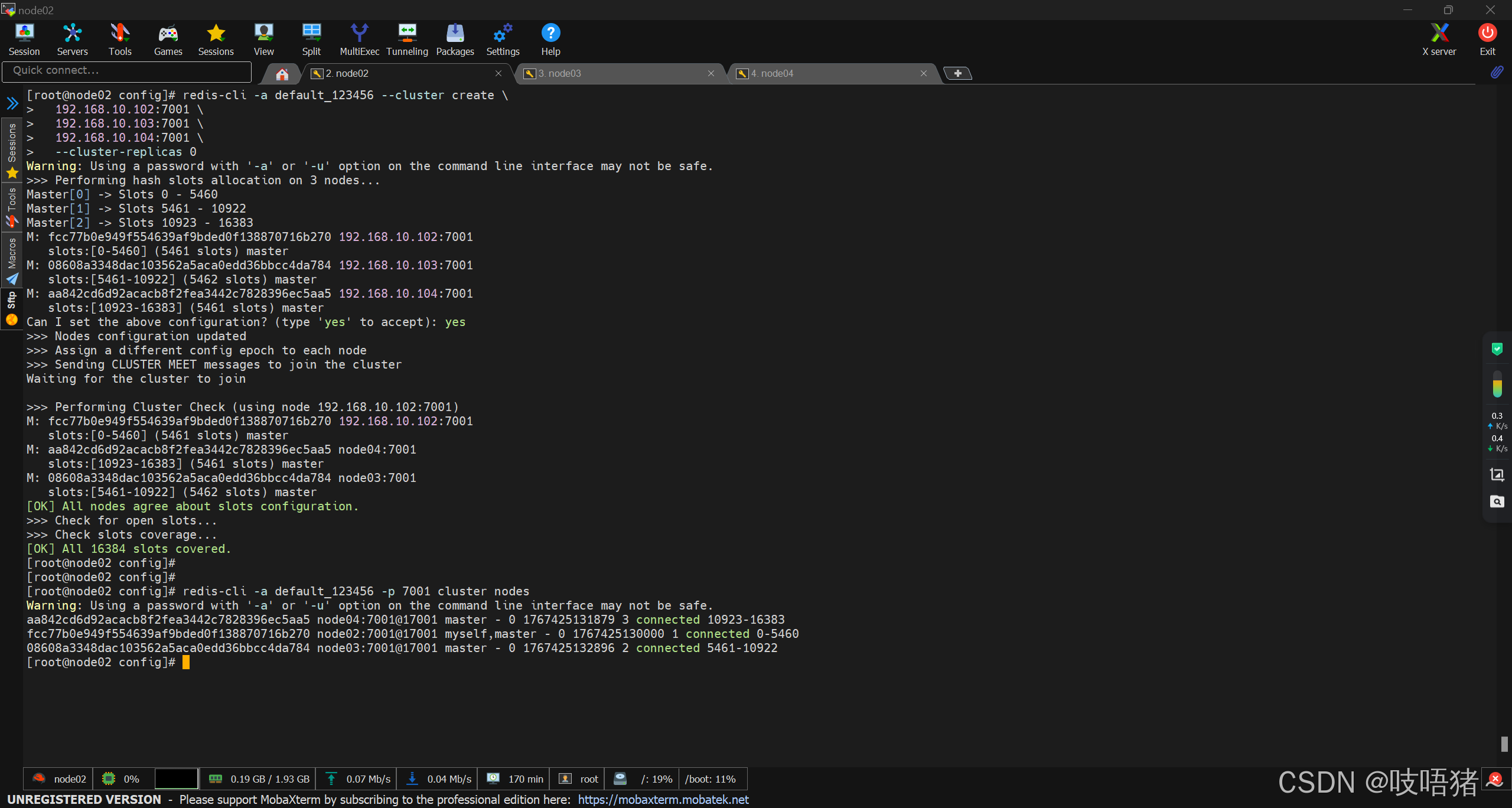 redis-cli -a default_123456 -h 192.168.10.102 -p 7002 CLUSTER MEET 192.168.10.104 7001
