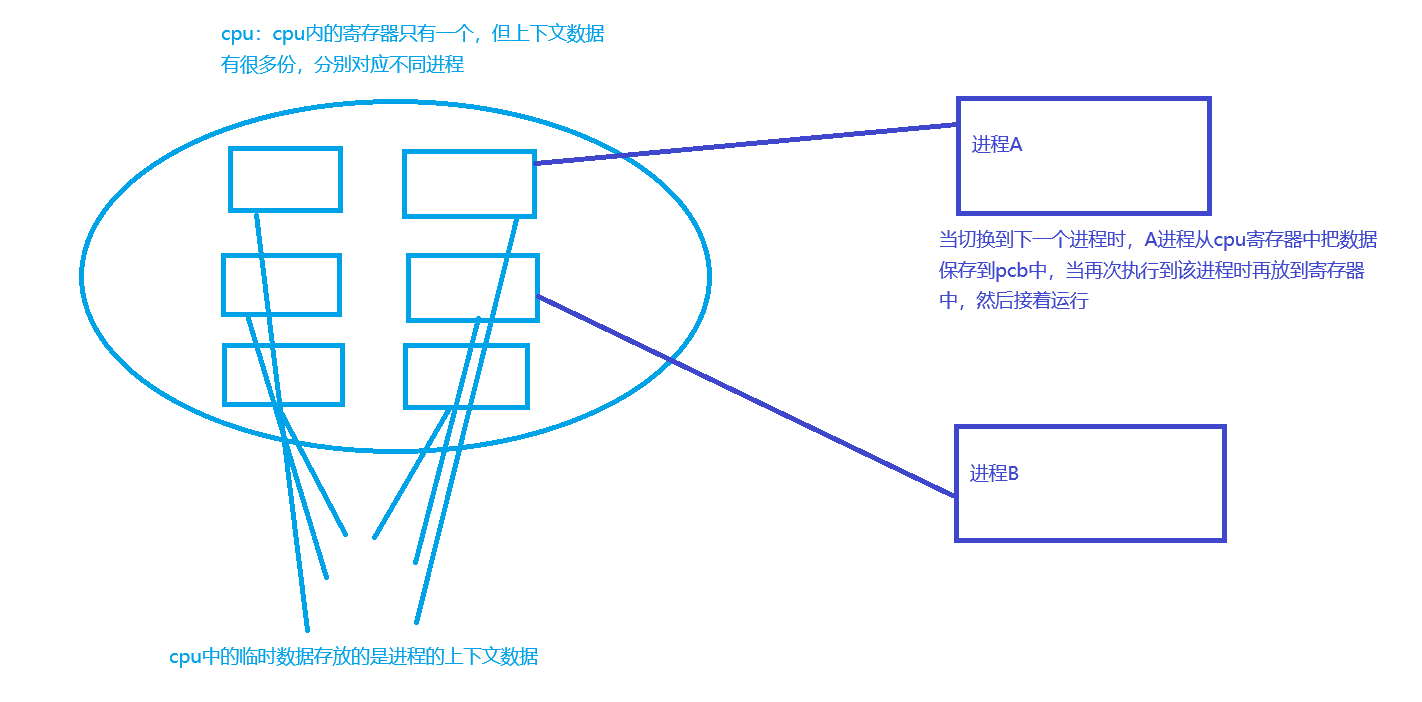 • 并发:多个进程在⼀个CPU下采⽤进程切换的⽅式,在⼀段时间之内,让多个进程都得以推进,称