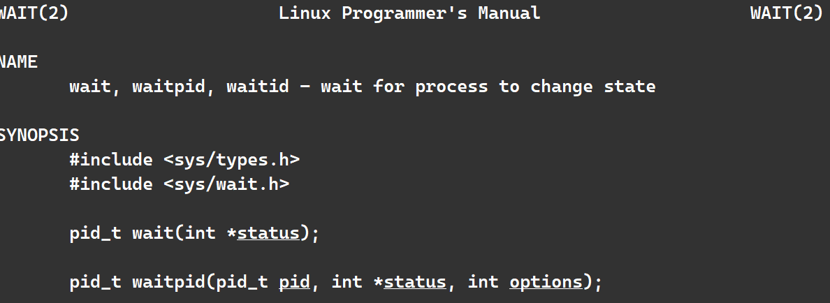 下面我们来介绍waitpid。同样使用man命令查看一下: