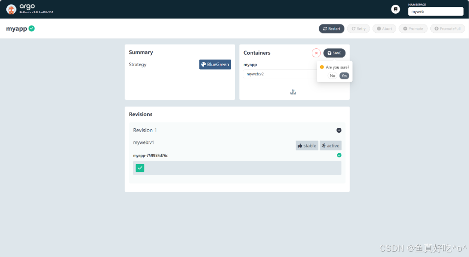 kubectl set image rollout/myapp-canary myapp=myweb:v2 -n myweb