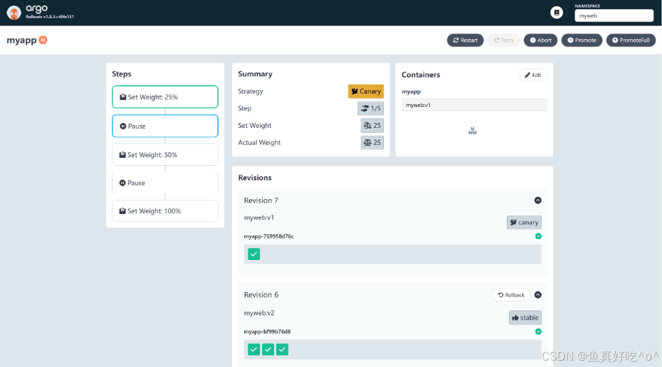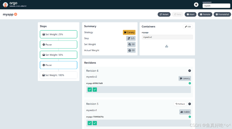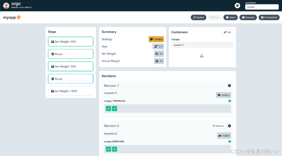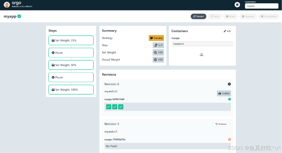 kubectl argo rollouts get rollout myapp-canary -n myweb --watch