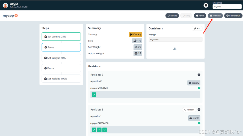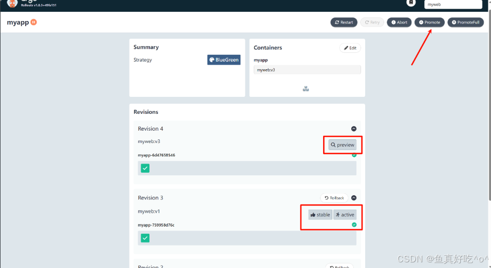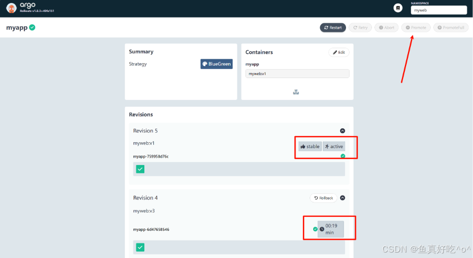 kubectl argo rollouts promote myapp-bluegreen -n myweb