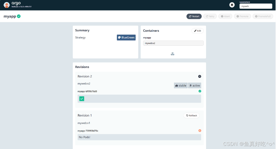 kubectl argo rollouts get rollout myapp-bluegreen -n myweb --watch