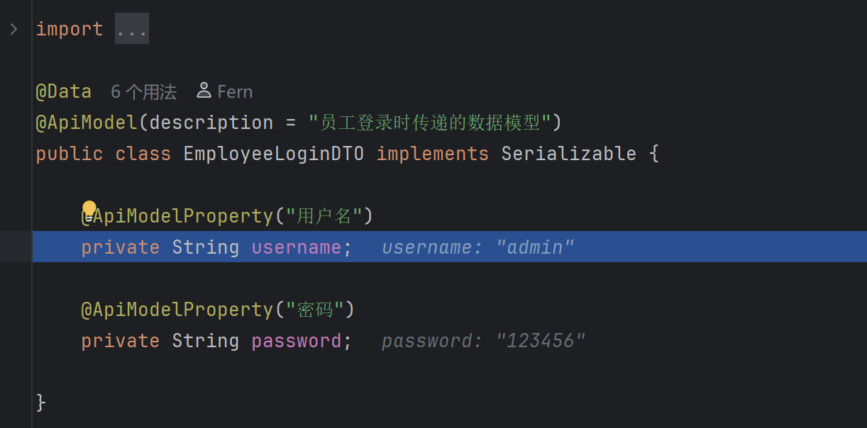 employeeLoginDTO:要记录的具体数据对象