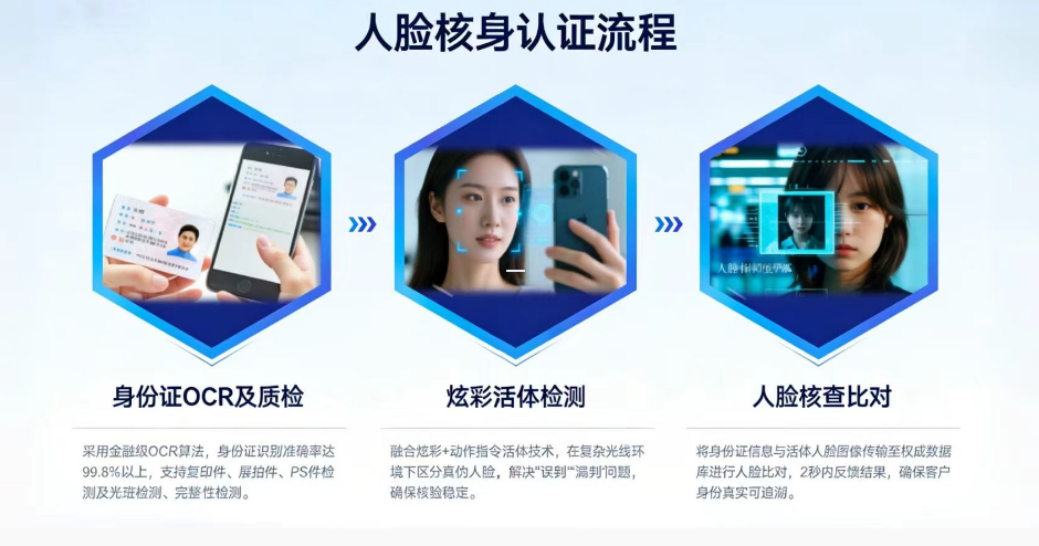 这是整个人脸核身方案区别于纯本地化方案的关键一步,也是满足监管要求的核心。