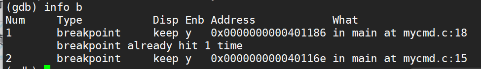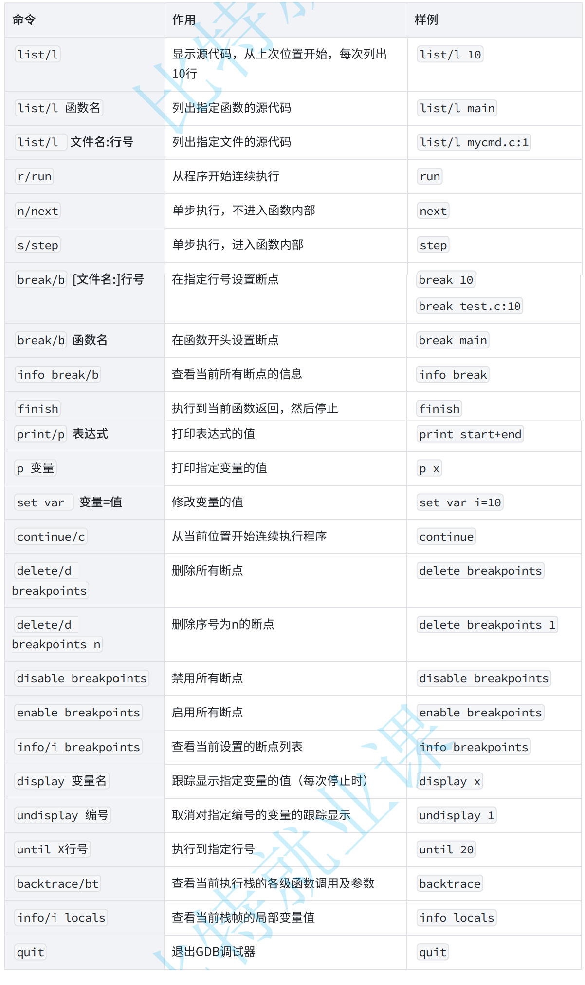 - watch 变量:执⾏时监视⼀个表达式(如变量)的值。如果监视的表达式在程序运⾏期间的值发⽣变化,GDB会暂停程序的执⾏,并通知使⽤者