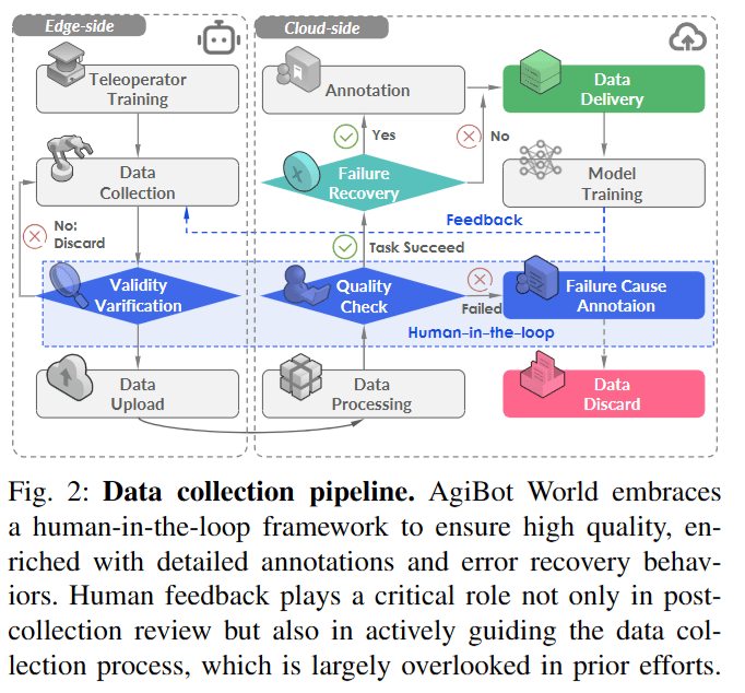 - 采集中遥操作员可能失误(如掉落物体),AgiBot World 要求从错误中恢复并继续任务(不重置)