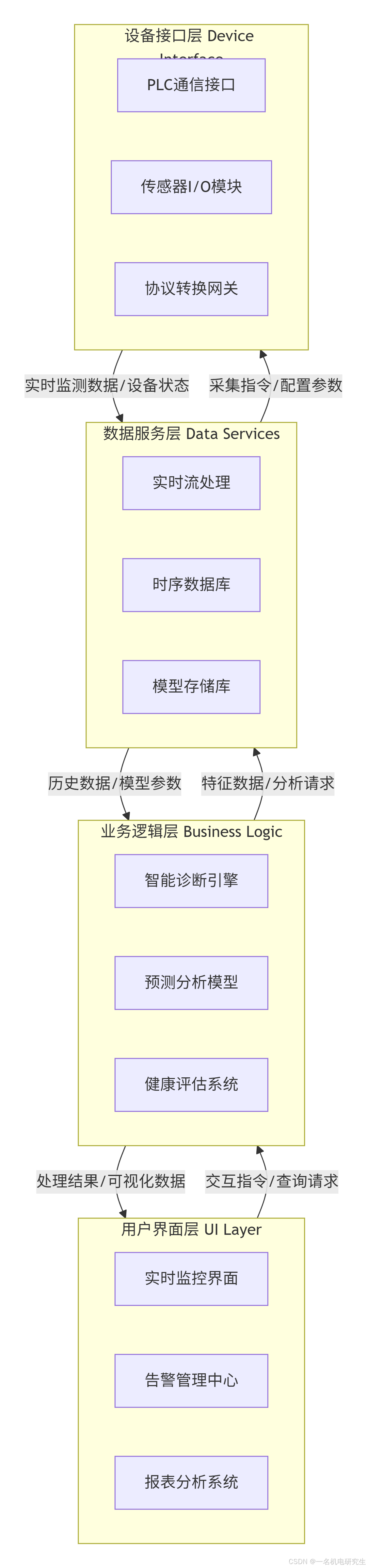 | 预测维护层 | 0.1-1Hz | 健康度指标、特征值 | 剩余寿命预测 |