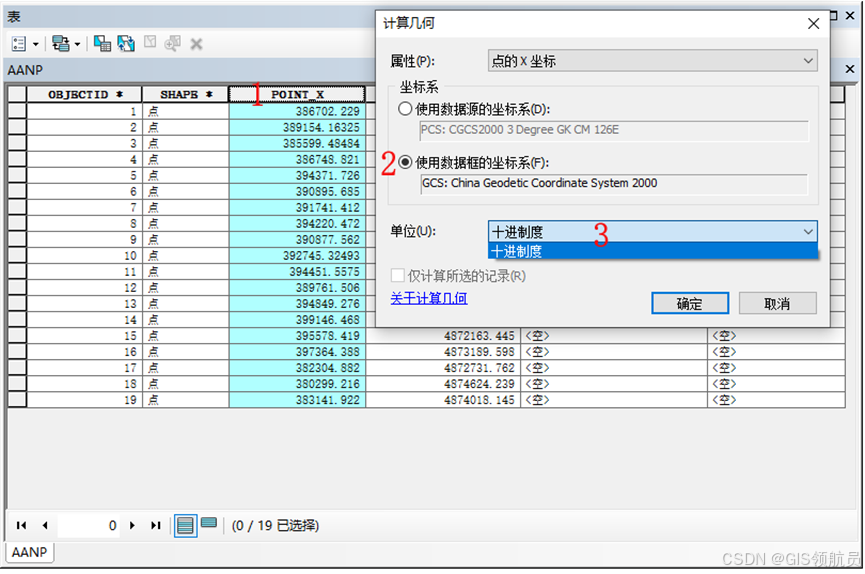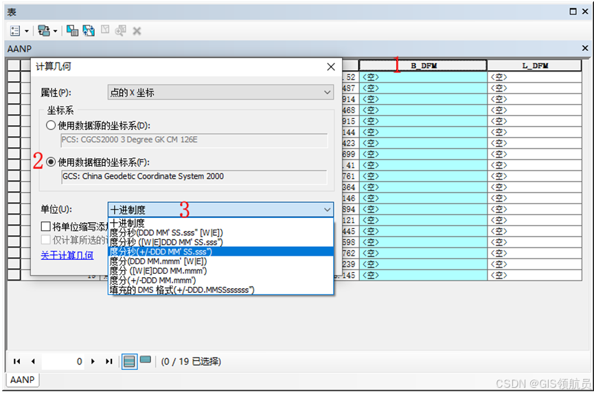 在1处右键---计算几何,选中数据框CGCS2000地理坐标系,但是在单位中只有十进制度。如何获取度分秒格式坐标呢?