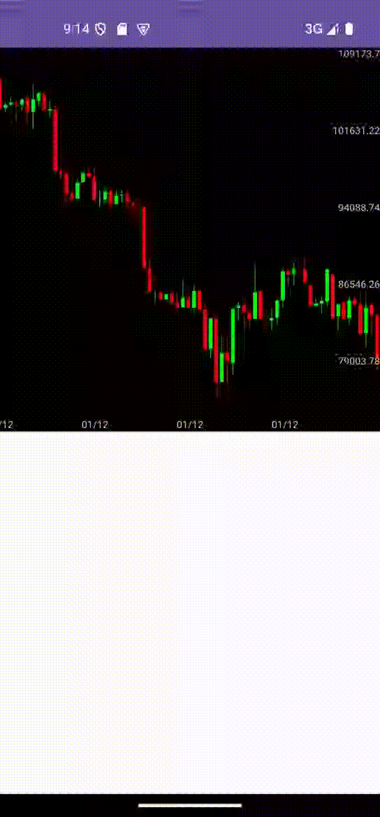缩放需要在以下地方应用:K线宽度、间距、滚动边界、translateX、可见范围、滚动位置。所有计算都使用 getScaledTotalCandleWidth() 获取缩放后的宽度。