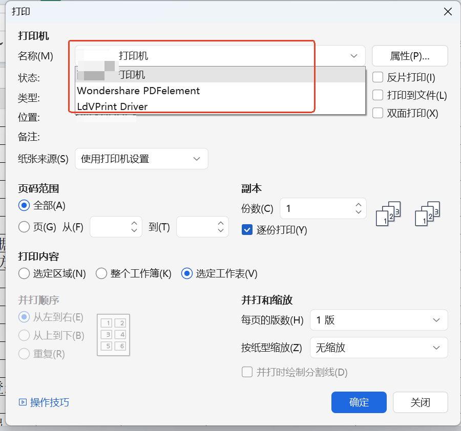在Office中打开打印功能,打印机列表已有Microsoft Print to PDF功能。