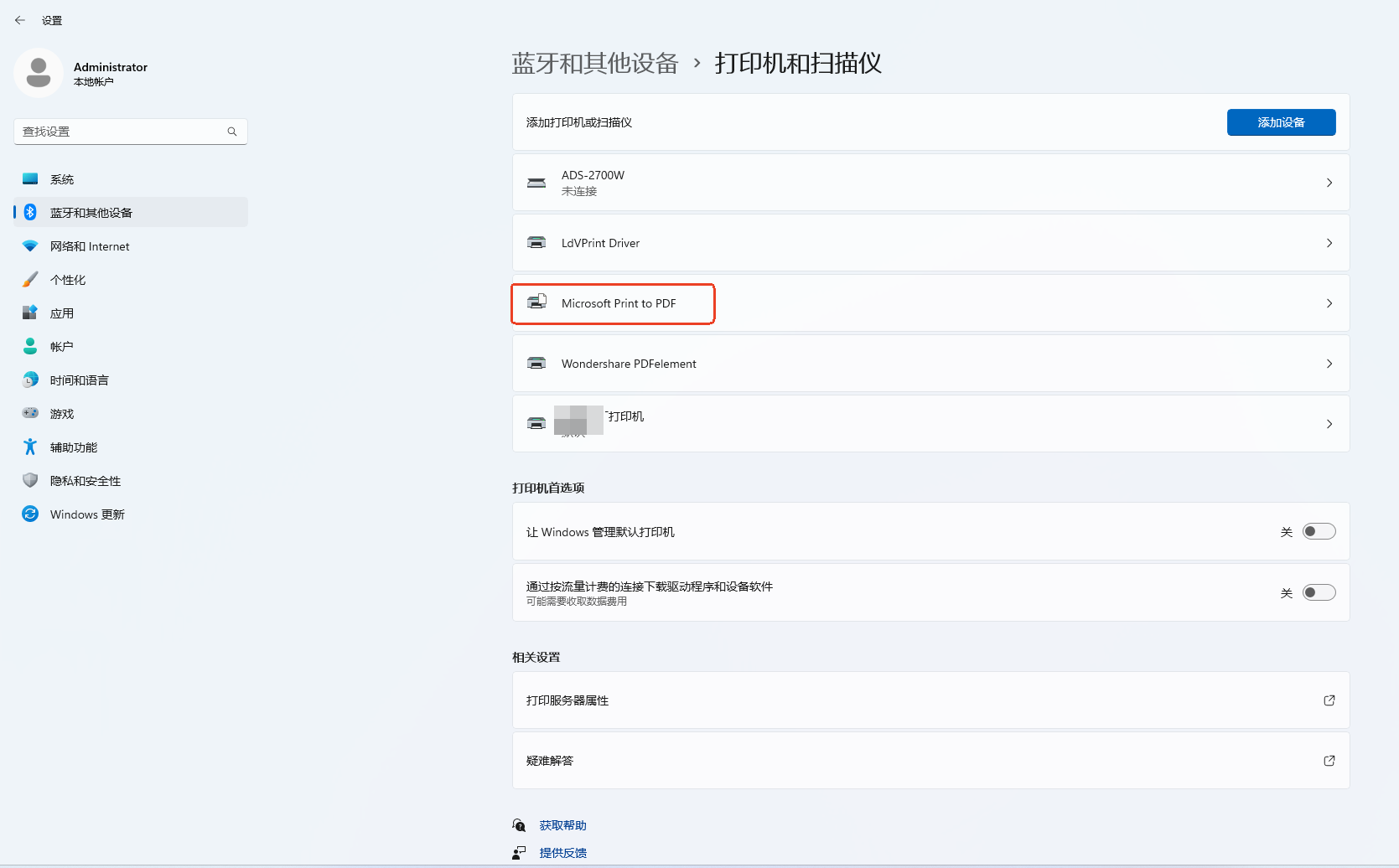 重新查看打印机列表,已经有Microsoft Print to PDF了