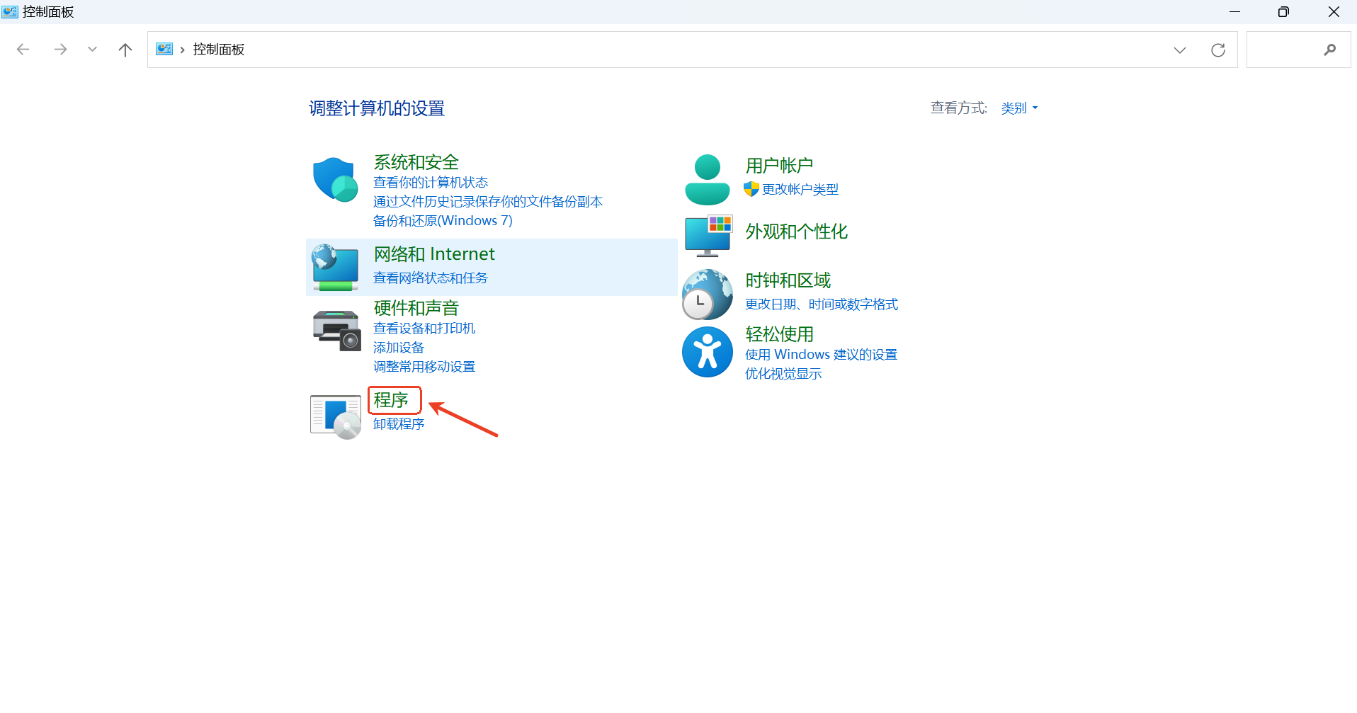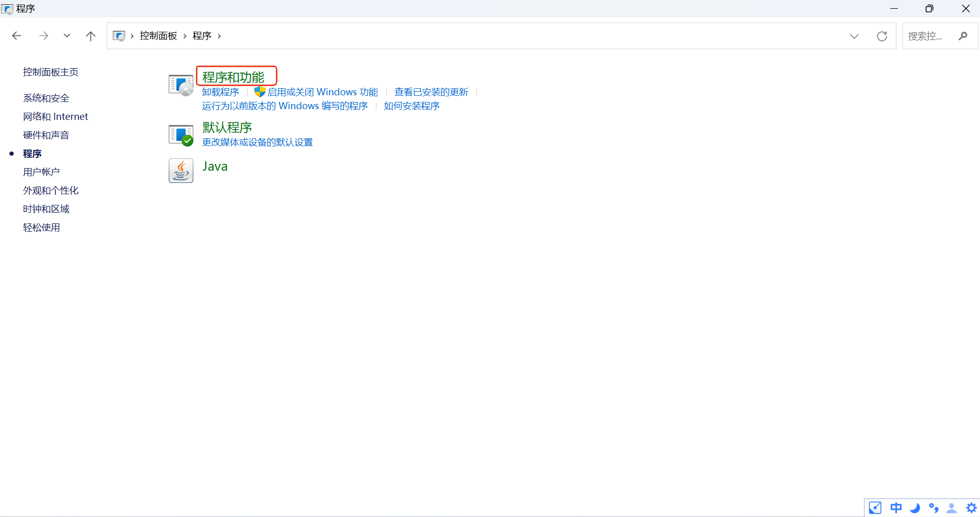 点击程序和功能