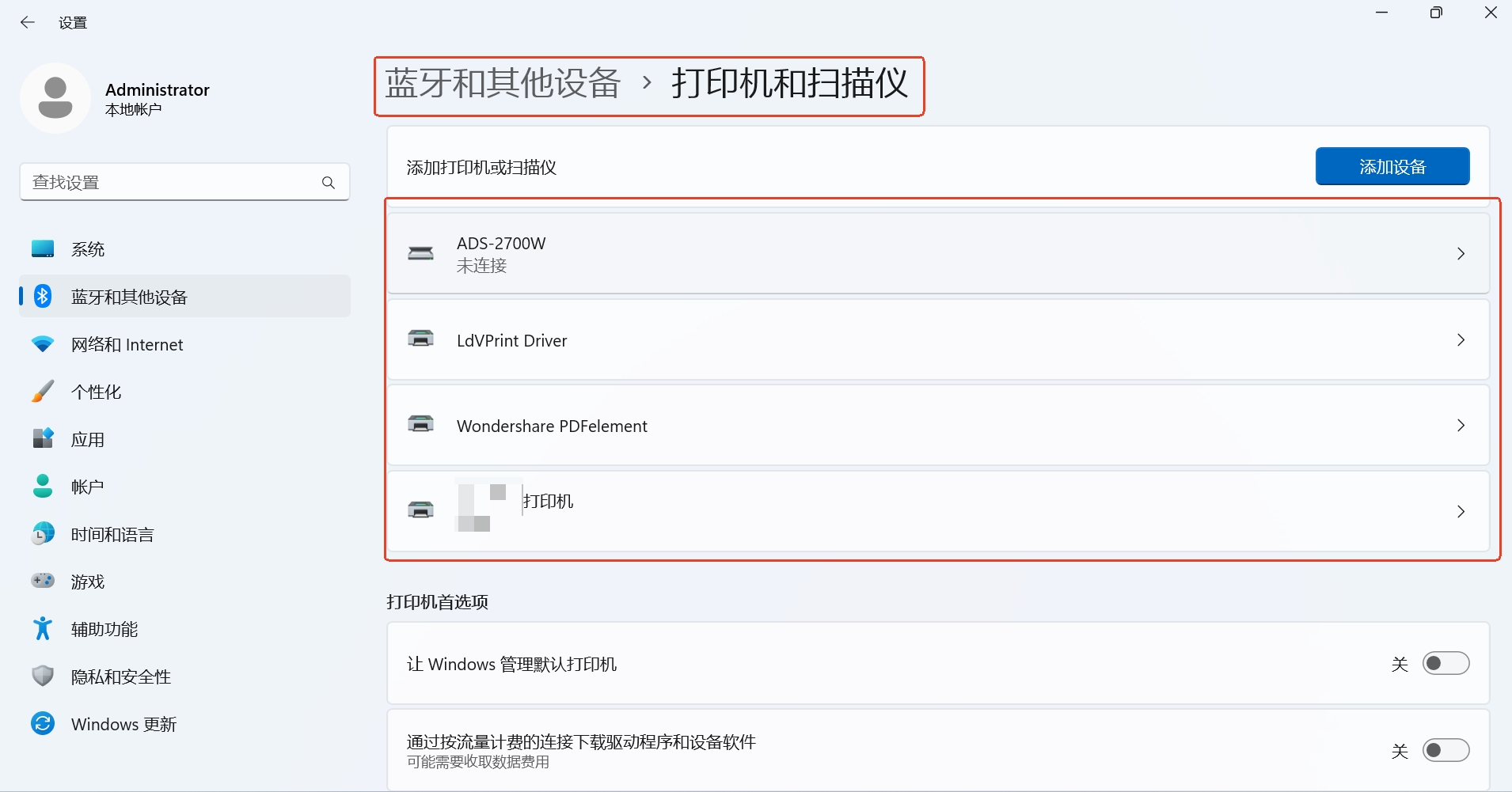 查看计算机打印机列表,发现也没有Microsoft Print to PDF
