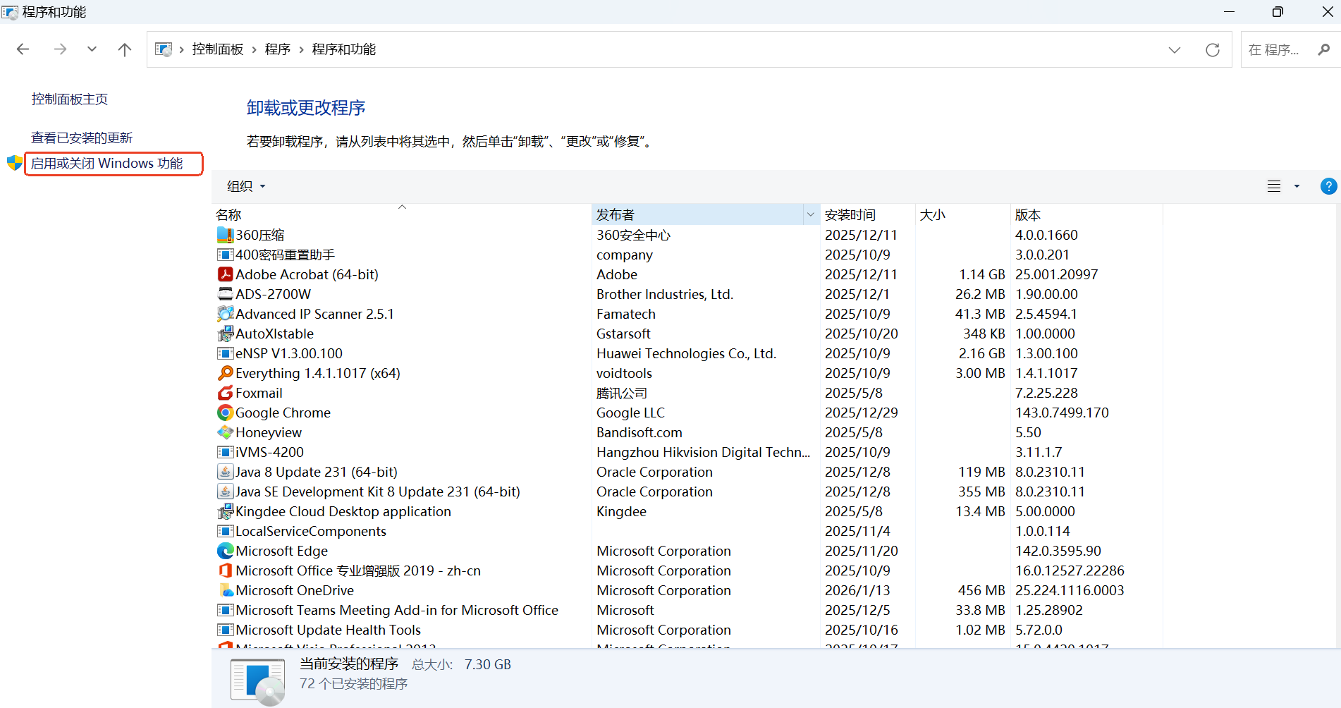 点击 启用或关闭Windows功能