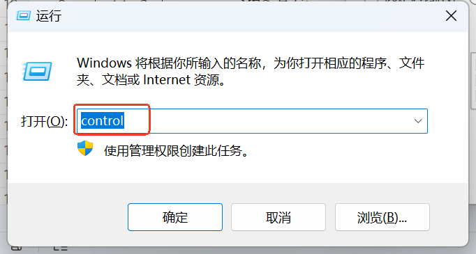 处理方法:Windows+R打开运行框,输入control,打开控制面板,点击程序