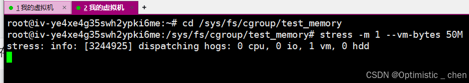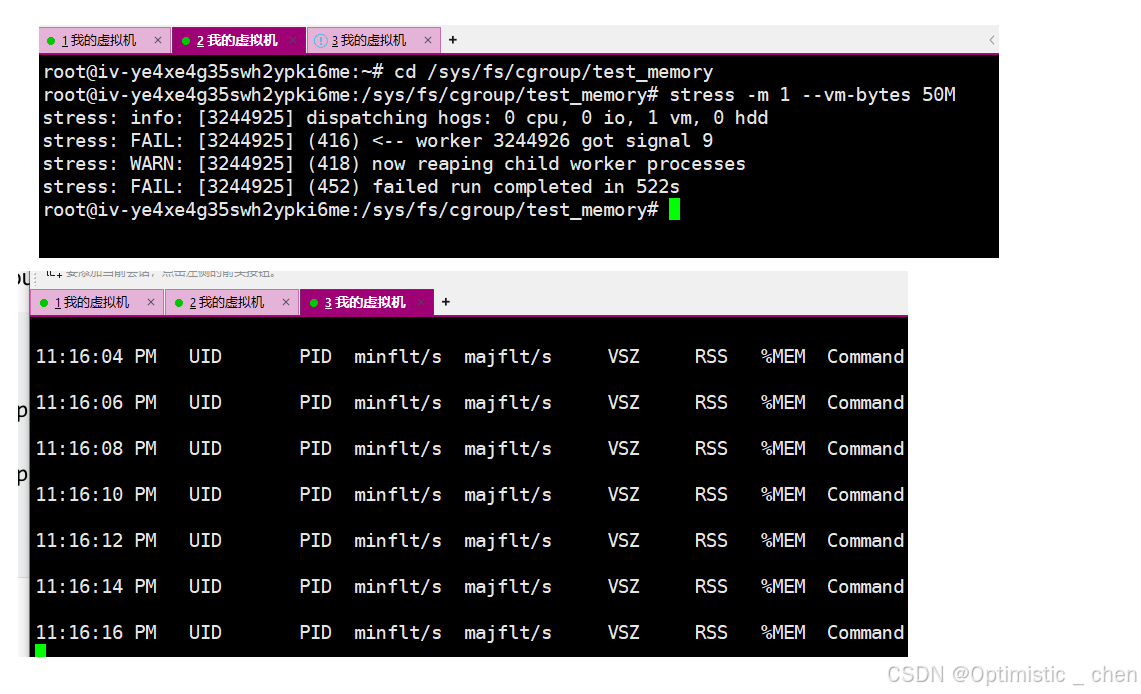 将进程ID移动到我们的cgroup.procs策略 中,同时我们发现stress进程因为无法申请到足够内存而退出,进程消失。