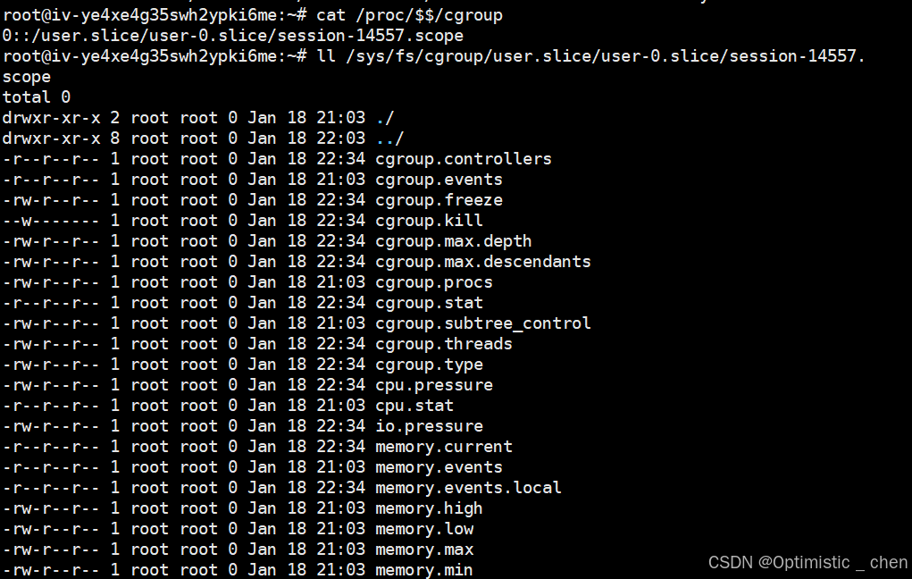 ll /sys/fs/cgroup/user.slice/user-0.slice/session-14557.scope