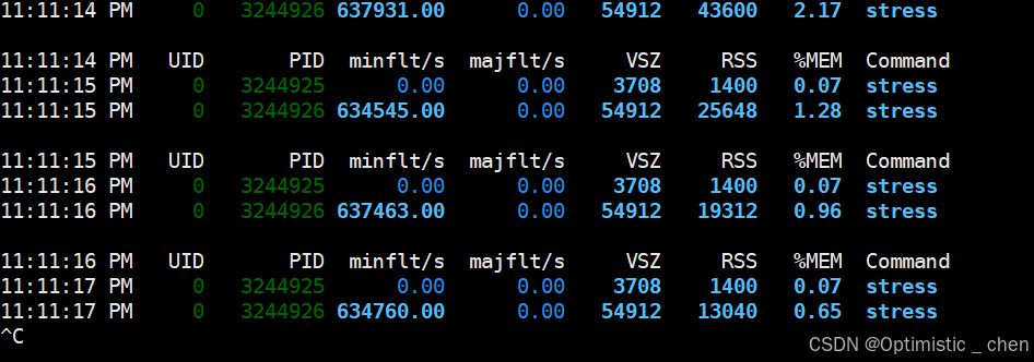 pidstat -r -C stress -p ALL 2 10000