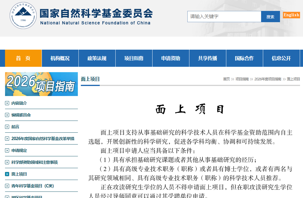 1月19日,国家自然科学基金委员会正式发布**《2026年度国家自然科学基金项目指南 》。**