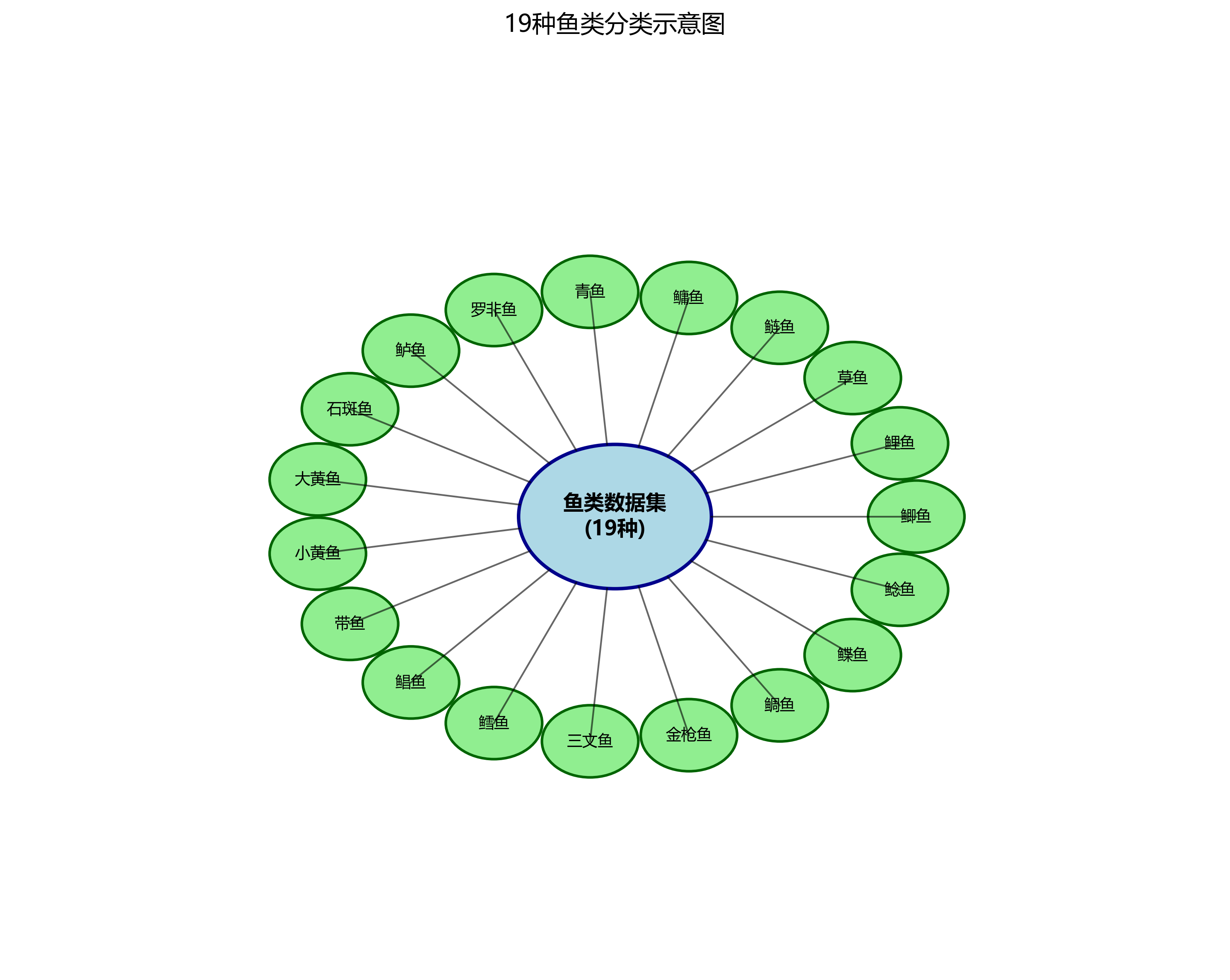为了训练一个能够识别19种鱼类的目标检测模型,我们需要一个高质量的数据集。我们收集了19种常见经济鱼类的图像,包括鲫鱼、鲤鱼、草鱼、鲢鱼、鳙鱼、青鱼、罗非鱼、鲈鱼、石斑鱼、大黄鱼、小黄鱼、带鱼、鲳鱼、鳕鱼、三文鱼、金枪鱼、鲷鱼、鲽鱼和鲶鱼。