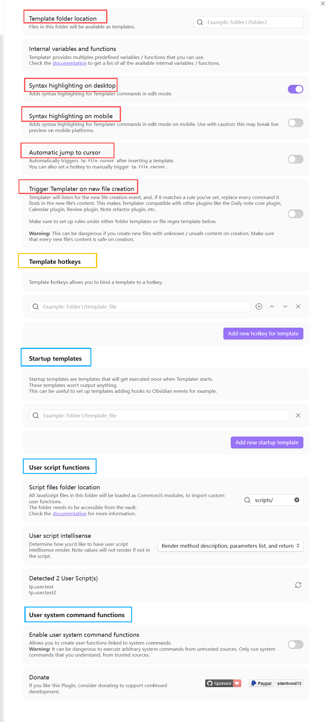 在桌面端编辑模式下为 Templater 命令启用语法高亮。 | |