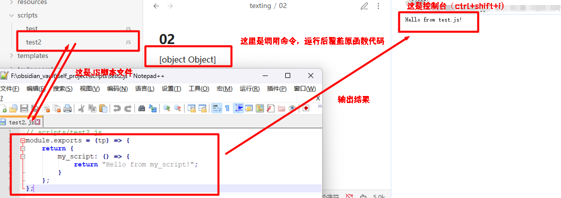 完整暴露 Obsidian API(如 tp.obsidian.App, Vault 等)。 |