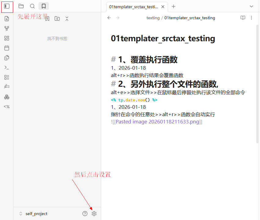 | 命令基本结构 | 必须包含开始和结束标签 | 所有命令必须写作: <% ... %> ✅ 正确:<% tp.date.now() %> ❌ 错误:tp.date.now()(缺少标签) |