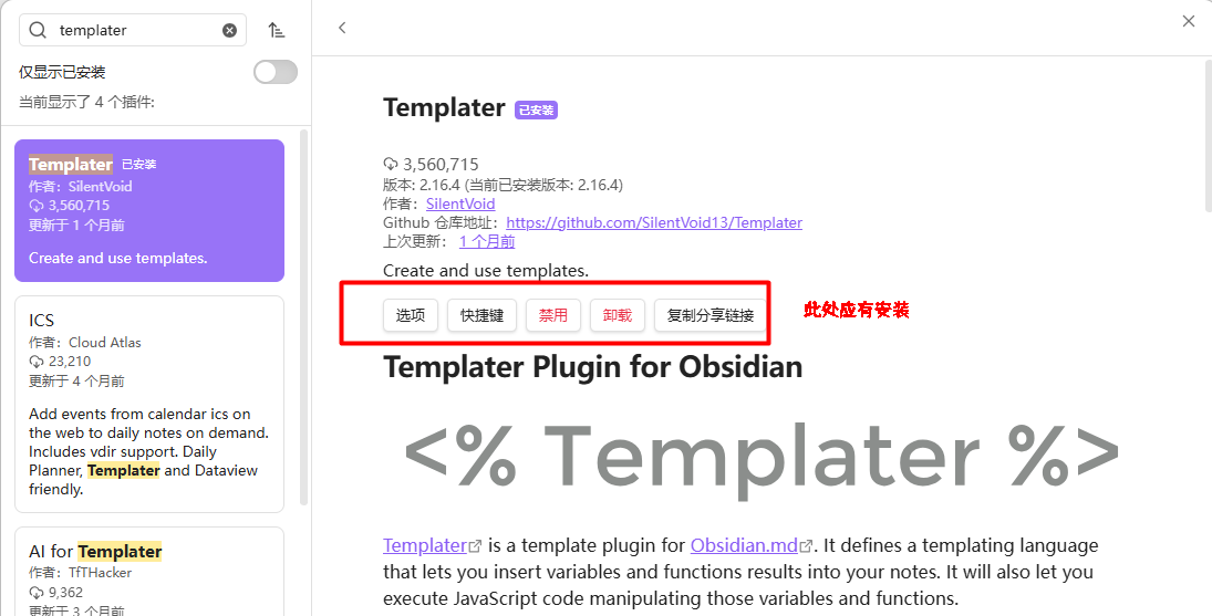 02Templater 面板设置说明: