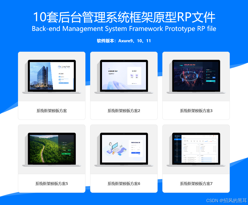 在信息化浪潮席卷全球的今天,后台管理系统作为支撑各类智慧化应用的核心平台,其界面设计的直观性、高效性与易用性直接关系到系统的整体效能与用户体验。Axure,作为一款强大的原型设计工具,凭借其丰富的交互组件与灵活的布局能力,成为众多设计师打造高保真后台管理系统模板的首选。本文将深入介绍一套专为智慧化领域量身定制的Axure后台管理系统模板------10套Axure高保真后台管理系统框架原型模版,它不仅覆盖了智慧社区、智慧乡村、智慧园区、智慧城市、智慧林业、智慧养老等多个关键领域,还深入具体应用场景,为信息化系统的发展提供了全面而细致的界面设计蓝图。