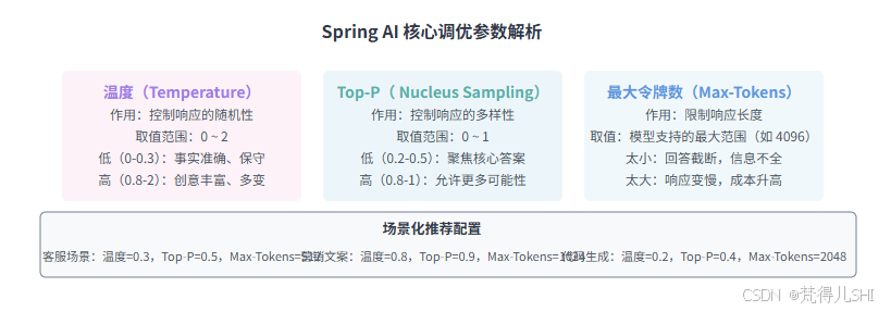 - 调优要场景化:不同业务场景(客服 / 营销 / 代码)需要不同的参数组合,无 "万能参数";