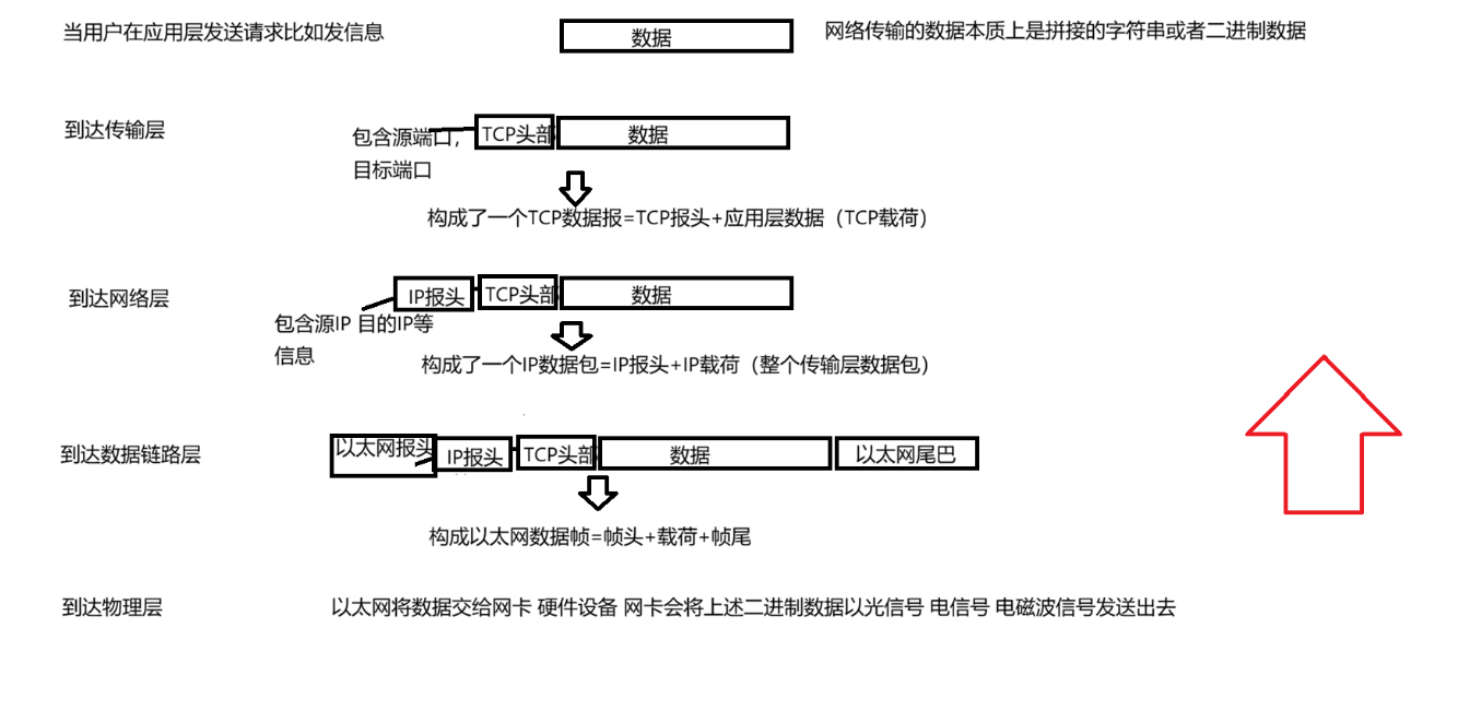 根据数据进行解析 每一层包含着下一层所使用协议信息 进而完成数据的接收:
