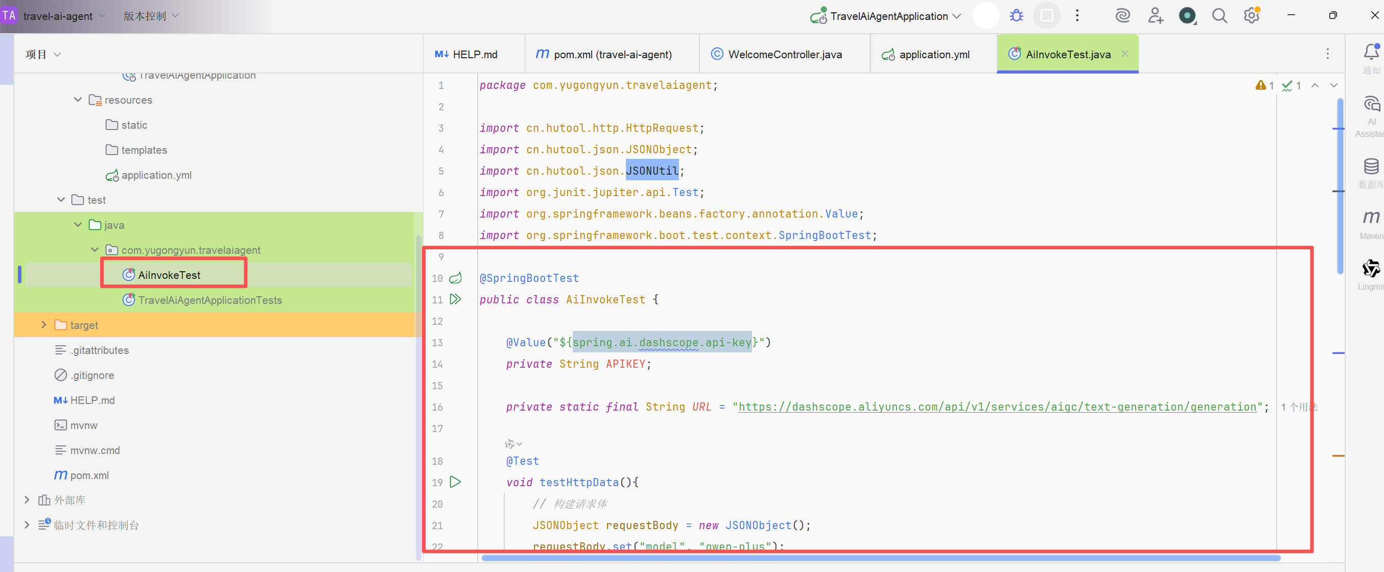 在上一期我们跑通了接口调用,我们就可以开始使用Java来接入阿里百炼大模型API了