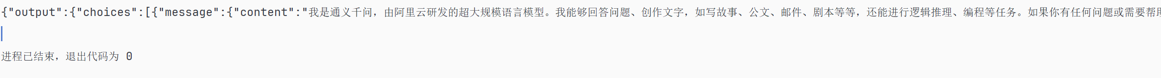 String result = dashscopeChatModel.call("你好你是谁");