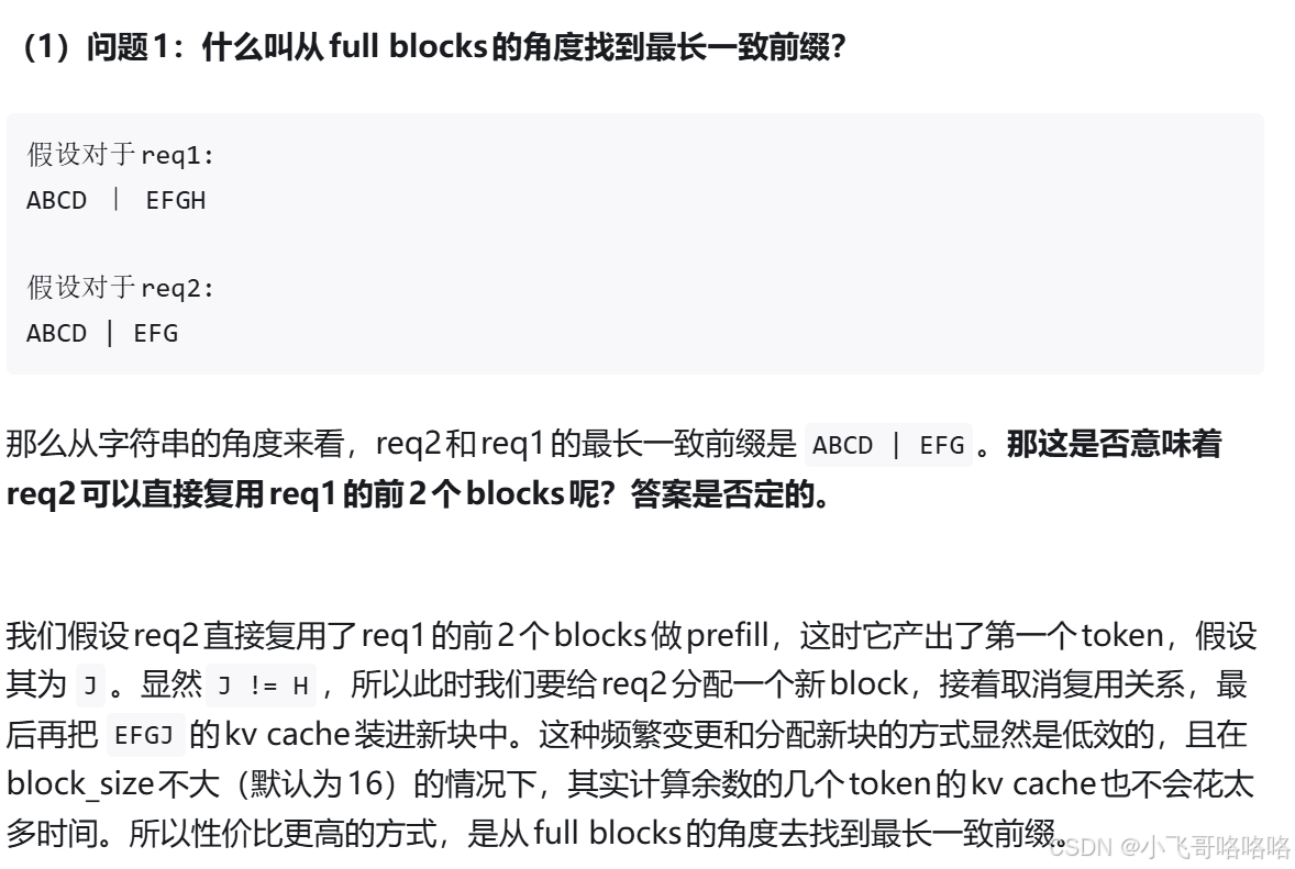 直白讲,就是在KV Cache保存时,如果是相同前缀的完全相同的block,可以复用。