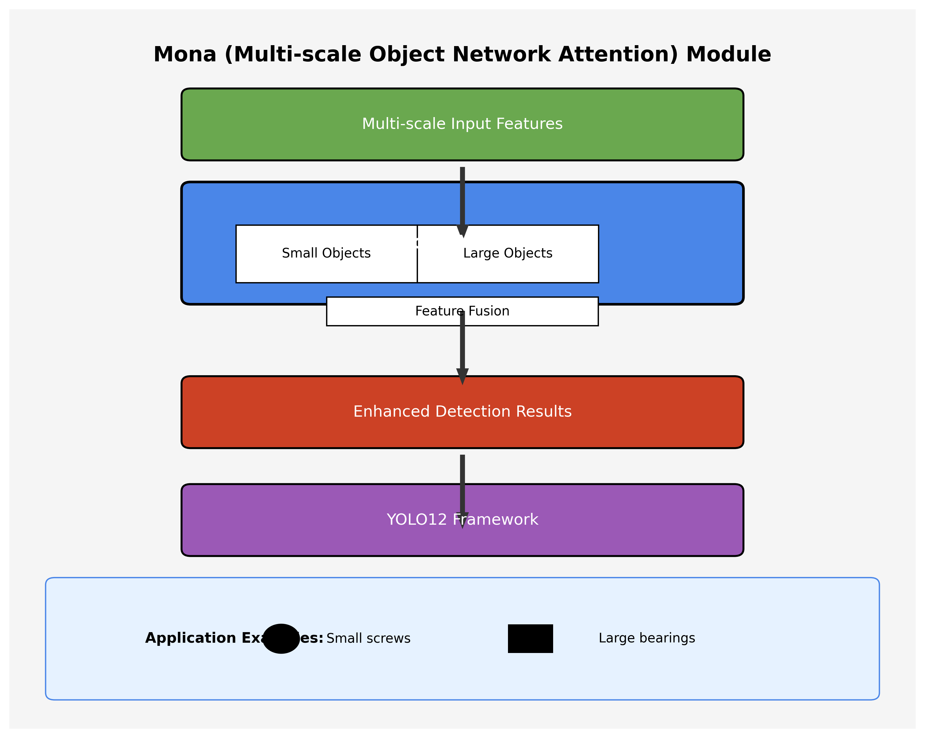 特别值得一提的是,Mona模块在处理复杂背景下的铁件部件时表现出色,能够有效抑制背景干扰,突出目标特征。这一点在实际应用中尤为重要,因为工业生产环境往往存在各种干扰因素,如光照变化、背景杂乱等,Mona模块的引入使我们的系统能够在这些复杂环境下保持稳定的检测性能。