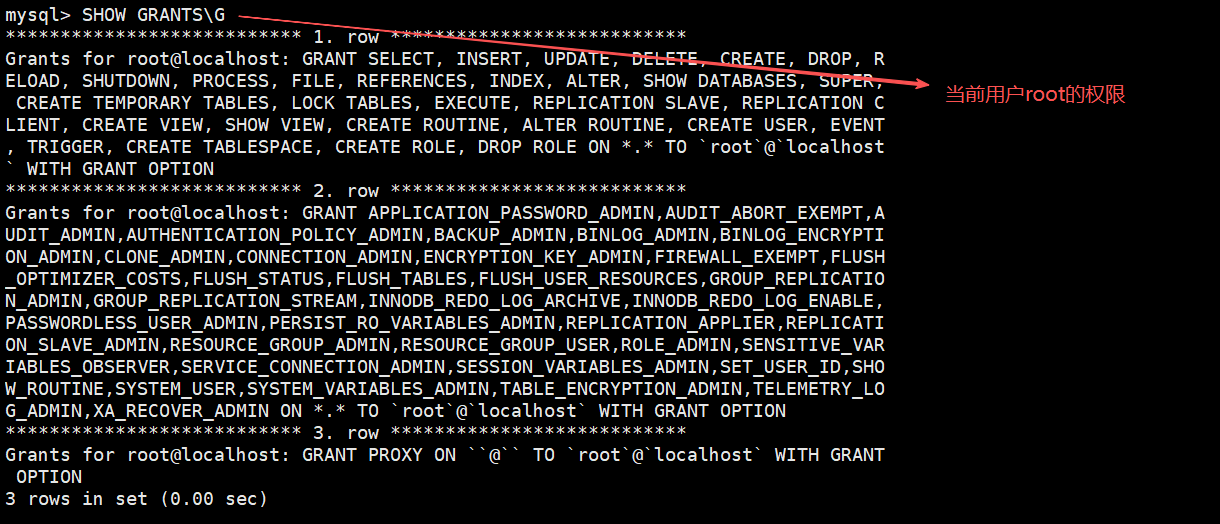 SHOW GRANTS\G -查看当前用户权限