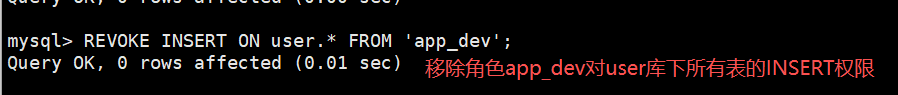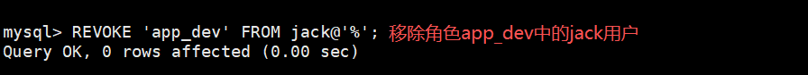 REVOKE <'角色名'> FROM <用户名>@<IP/主机名>