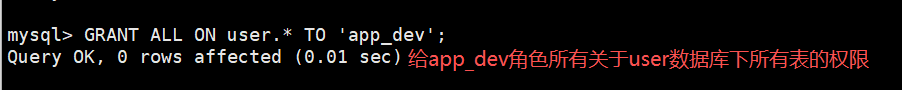 GRANT <权限名> ON <数据库名.表名> TO <'角色'>