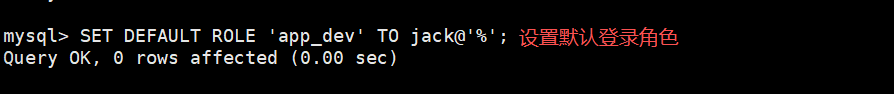 SET DEFAULT ROLE <'角色'> TO <用户名>@<IP/主机名>