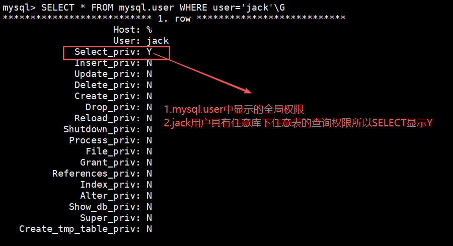 jack用户具有全局的SELECT权限