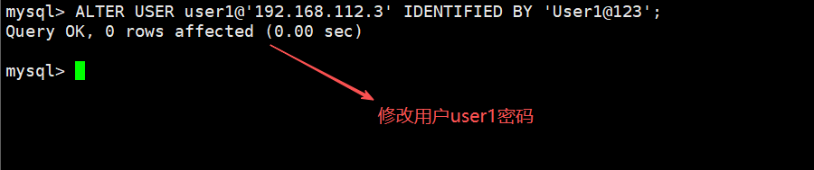 ALTER USER <用户名>@<IP/主机名> IDENTIFIED BY '新密码'