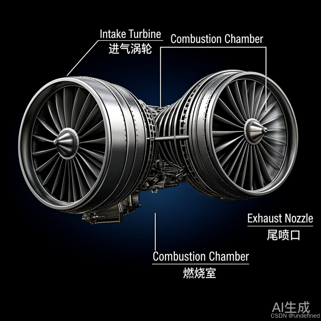 画个航空发动机的仿真3d图,其中的字体有中英双语注程