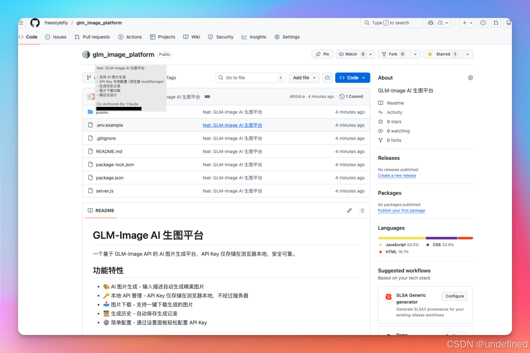 目前 GLM-Image 的 API 还处于内测阶段,为了方便大家体验,我用 Claude Code 配合 GLM-4.7 开发了个测试平台,并且在 GitHub 上开源了。