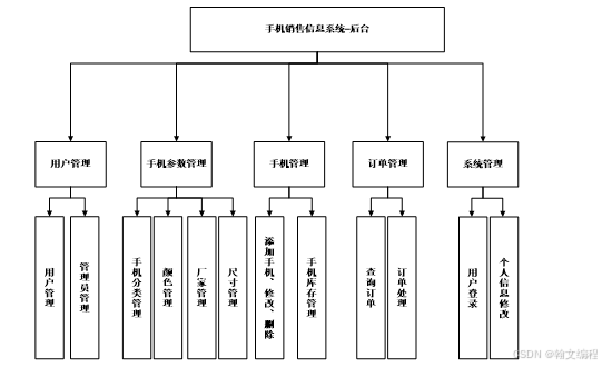 后台管理,主要包括系统管理、手机管理、订单管理等处理系统日常业务工作,主要功能如图4-3所示: