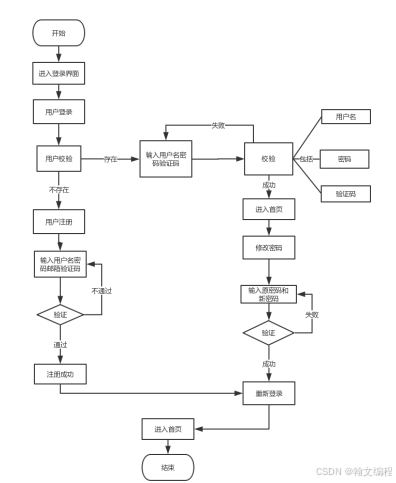 注册用户是构成网站主体的一个重要组成部分,网站设置注册用户的目的之一在于方便网站信息的管理。用户在登录之前需要先进行注册,在首页中点击"注册"链接就可以到达注册页面。用户注册要输入用户名、密码、邮箱和验证码,通过系统校验成功即可登录。进入页面首页也可以进行密码修改的操作。操作功能过程,如图所示: