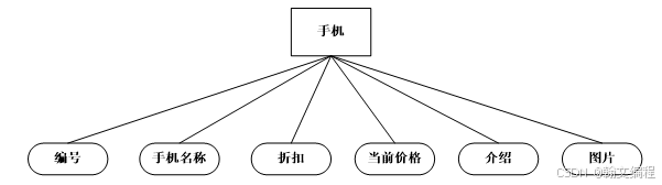 手机信息实体,主要包括 手机编号,手机名称,折扣,当前价格,介绍,图片,尺寸,颜色,手机分类,厂家,商品分类,浏览量,库存,上架 等信息实体。如图4.5所示:
